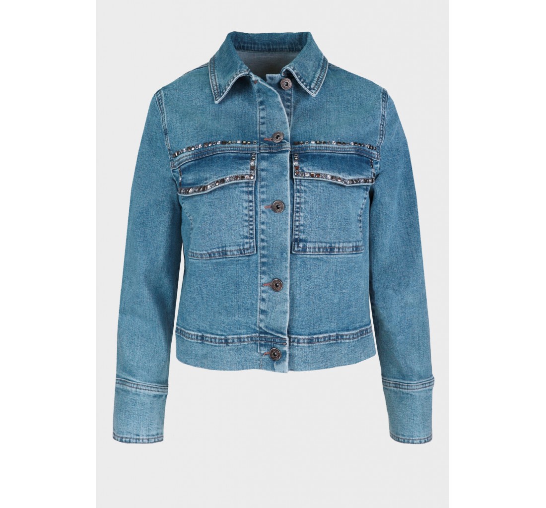 Dámská jeansová bundička Bianca kratší délky. Barva středně modrá. Materiál:98%bavlna,2%elastan.