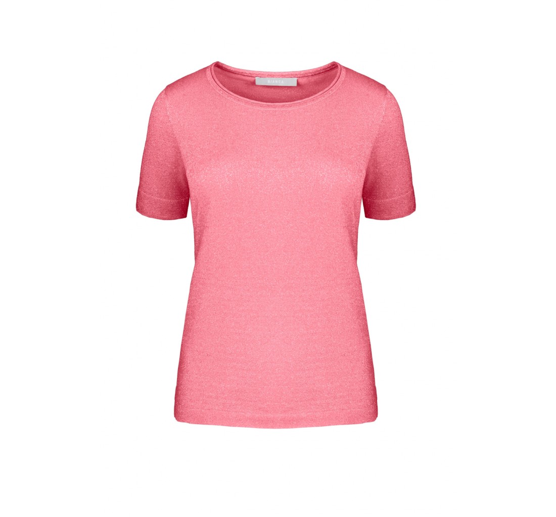 Dámská halenka Bianca. Střih - krátký rukáv. Barva růžová. Materiál: 80% viskoza, 20% lurex.