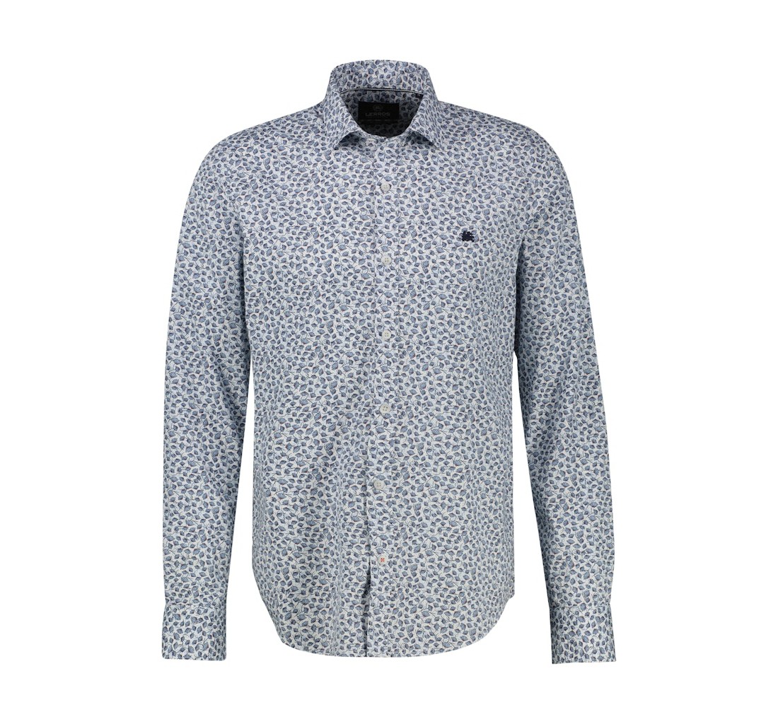 Pánská košile Lerros rovného střihu. Barva bílá + modré květy. Materiál: 97% bavlna, 3% elastan.